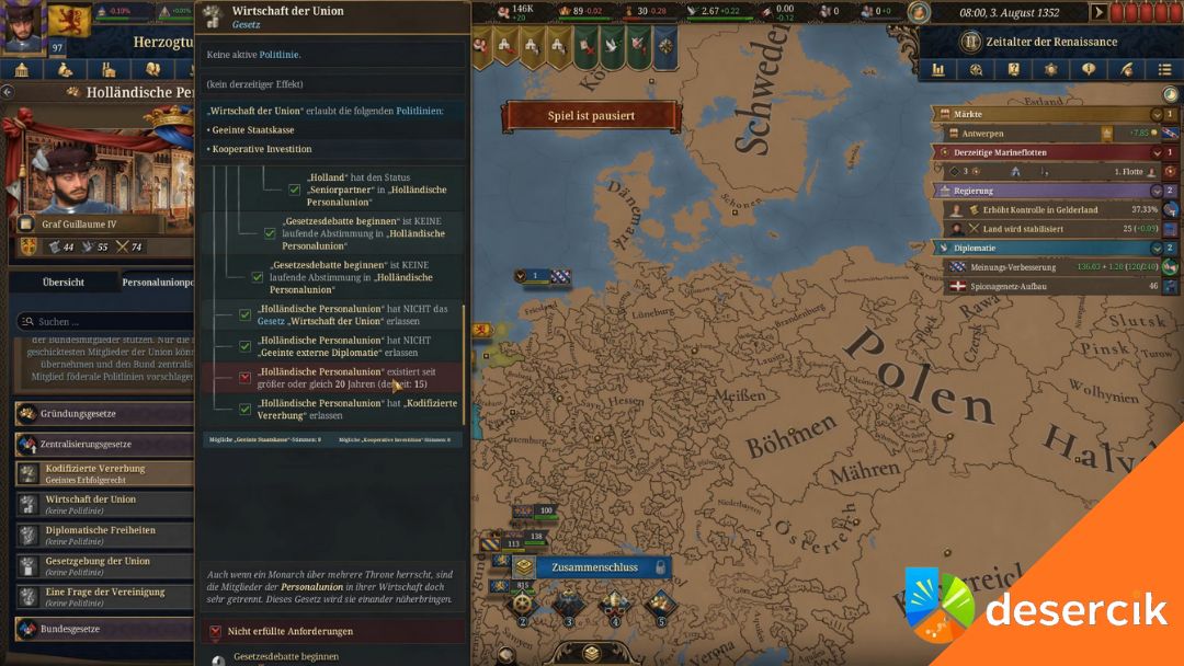 Europa Universalis 5 od pierwszych minut potrafi rozgrzać mózg do czerwoności. Nawet weterani serii potykają się o niektóre mechaniki, a jedną z tych, które najczęściej wywołują konsternację, są Unie Personalne. Niby kojarzymy je z poprzednich części, ale EU5 zrobiło to po swojemu i wymaga chwili, żeby ogarnąć, co tu się właściwie dzieje. Poniżej wyjaśnię, jak działa cały system, skąd biorą się Unie i co możesz z nimi zrobić, jeśli nagle wpadniesz w taką relację.