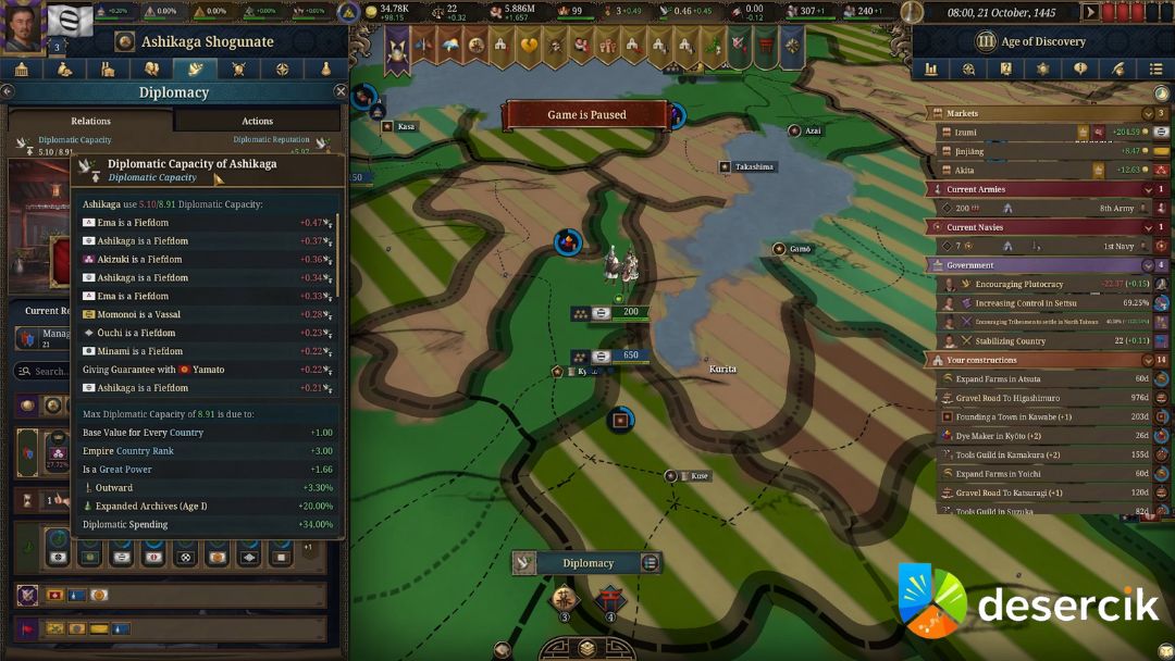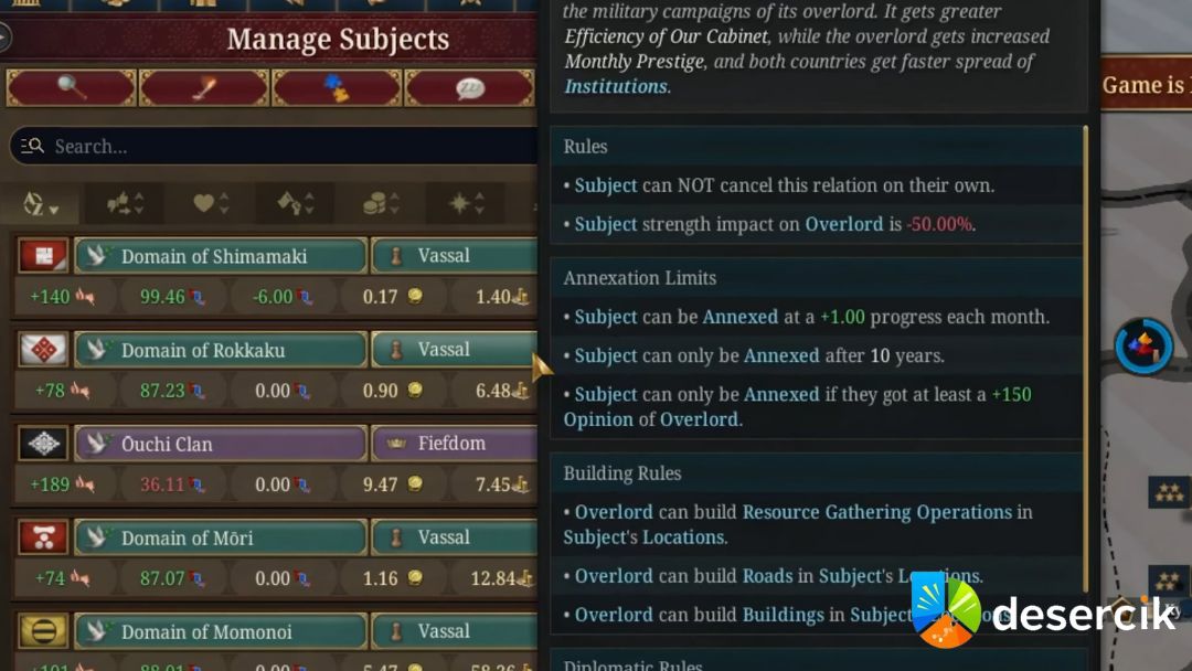 Europa Universalis 5 wprowadza nowy poziom głębi w zarządzaniu państwami zależnymi, dlatego wybór odpowiedniego rodzaju poddanych ma teraz znacznie większe znaczenie niż kiedykolwiek wcześniej. Każda decyzja w tym zakresie może zaważyć na potędze twojego imperium – nie tylko militarnie, ale też ekonomicznie i dyplomatycznie.