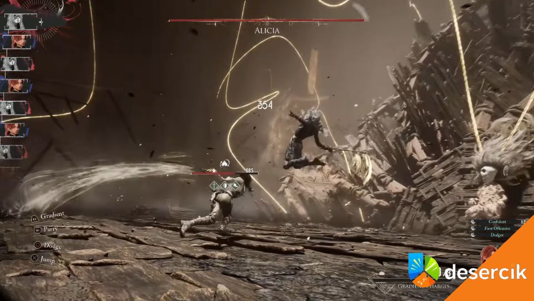 Alicia porusza się szybko, używa miecza i lubi agresywne serie ciosów. Tu liczy się to, jak dobrze opanujesz parowanie i uniki. Po kilku próbach jej schematy wchodzą w pamięć.