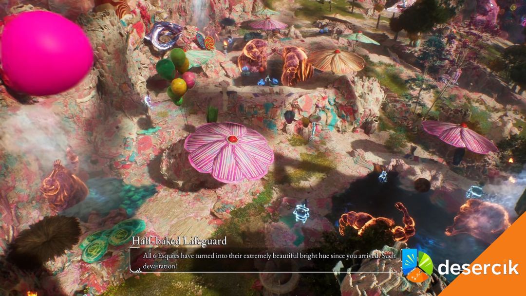 Gdy porozmawiacie z Half-baked Lifeguard, ekran się oddali, ukazując wszystkie sześć statuetek Esquie w okolicy. Gracz może zmieniać kolor każdej statuetki, ale warunek jest prosty: trzy muszą pozostać czerwone, a trzy niebieskie, aby zagadka została rozwiązana poprawnie.