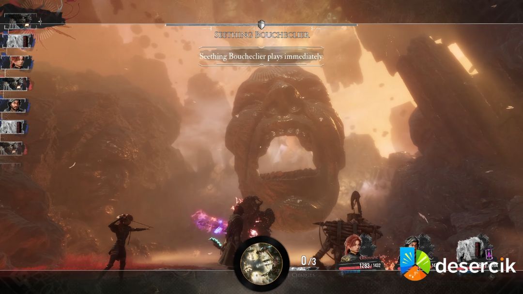 Boucheclier zaczyna pojedynek z 4 tarczami, więc jeśli chcesz od razu wypalić swoje najmocniejsze skille… cóż, nie polecam. Stracisz turę i nerwy, a tarcze i tak zostaną. Najpierw trzeba je zdjąć.