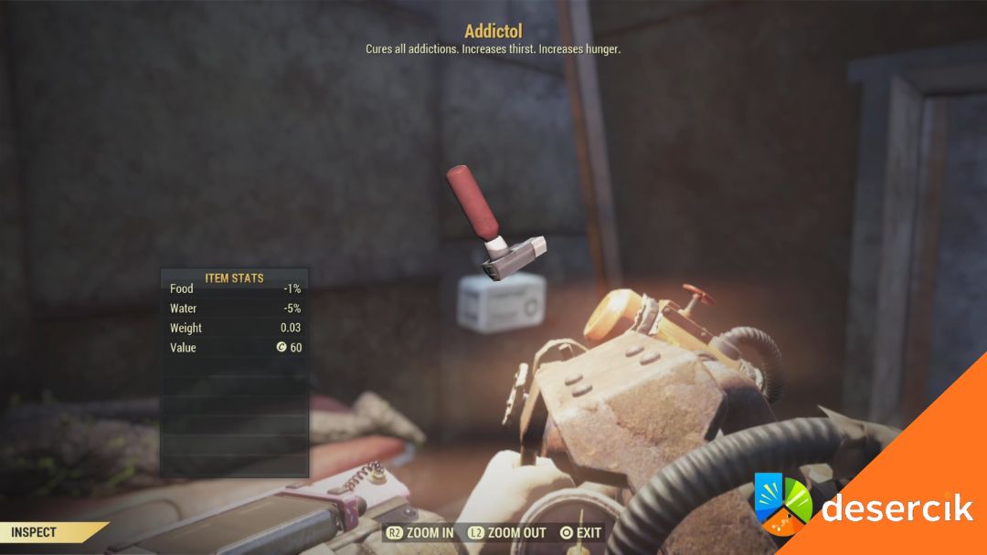 • Za odpowiednią opłatą można leczyć uzależnienie w większych osadach, np. Vault 76 czy Wreckage Clinic.