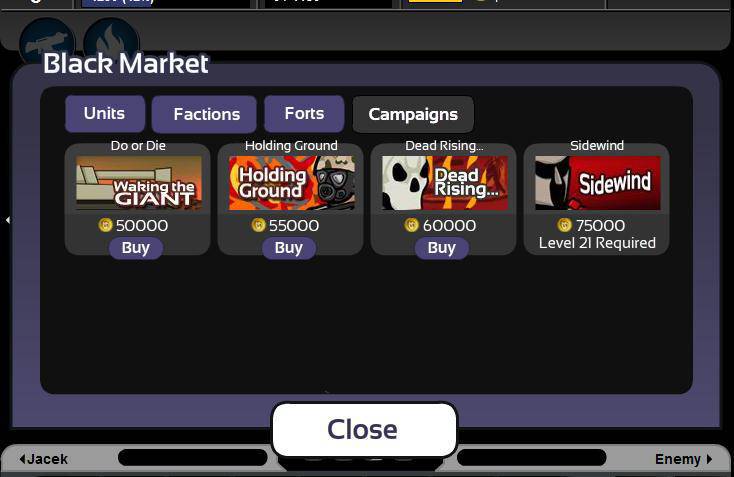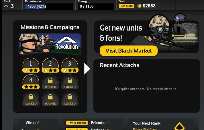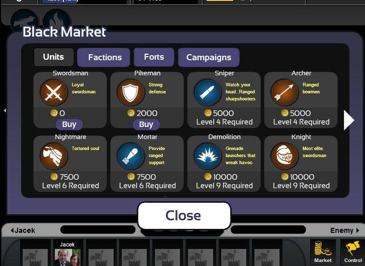 Pokonując fort wroga zarabiamy gotówkę, którą wydamy na czarnym rynku, ale niektóre poziomy dają jej mniej, a za to więcej expa możemy zyskać. Więc coś za coś. Dostępne są różne jednostki od normalnych żołnierzy z karabinami, poprzez miotacze ognia, do już ciężejszego sprzętu. Polecam wszystkim fanom gier typu defense i entuzjastom gier zręcznościowych.