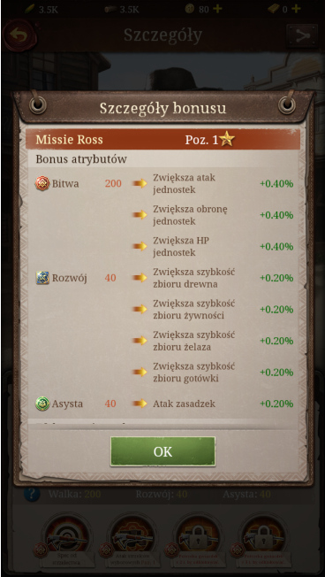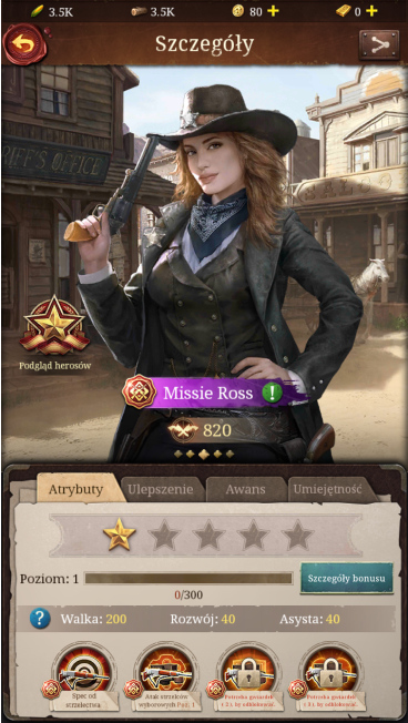 Kiedy poziom herosa w grze Frontier Justice zostanie podniesiony, zwi臋kszy si臋 r贸wnie偶 odpowiednio warto艣膰 jego trzech atrybut贸w: walki, rozwoju i wsparcia.