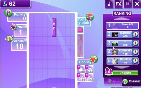 Zasady są intuicyjne i dobrze znane, więc nie ma tu żadnej bariery wejścia. Do prostokątnej planszy spadają klocki o różnych kształtach, a naszym celem jest układanie ich tak, aby wypełnić całą linię na szerokość. Gdy linia zostanie zamknięta, znika, a na konto wpadają punkty. Jeśli jednak popełnimy kilka błędów i plansza zacznie się zapełniać chaotycznie, rozgrywka kończy się szybciej, niż byśmy chcieli. To dokładnie ten sam stres i satysfakcja, które pamięta się z klasycznego Tetrisa.
