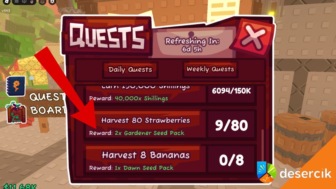 Po teleportacji w okolice Seed Shopu skręć w prawo i podejdź do Quest Board. To tutaj najczęściej zdobędziesz Gardener Seed Pack.