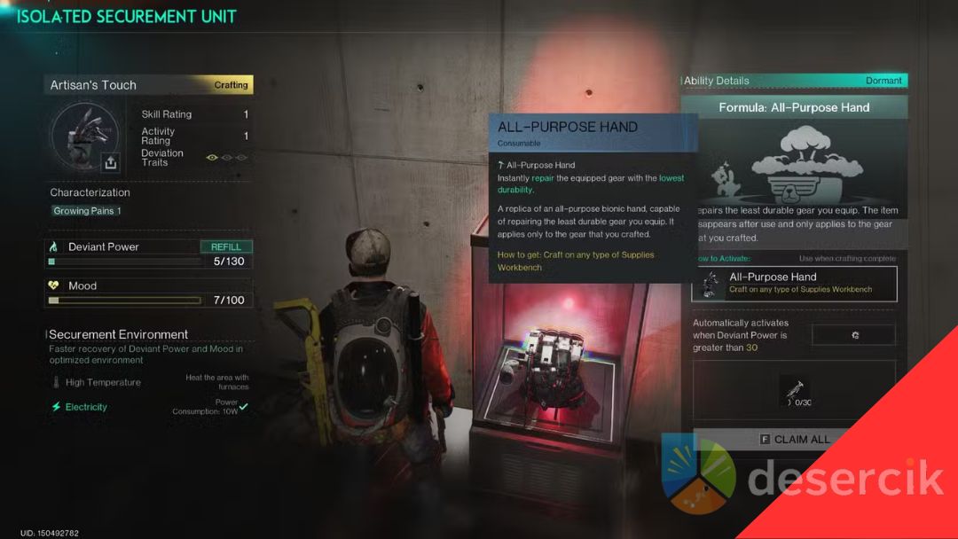 Ten Deviant to producent Universal Toolkits oraz sposób na odblokowanie taktycznego przedmiotu All-Purpose Hand, który można stworzyć na Advanced lub Intermediate Supplies Workbench.