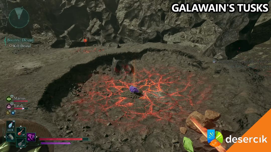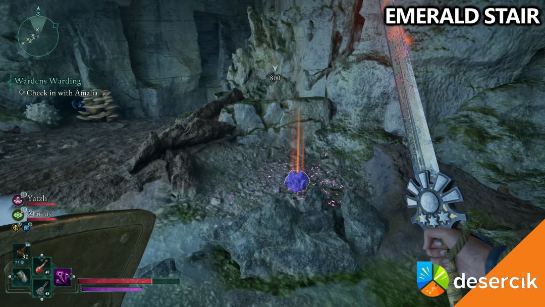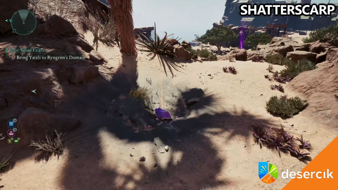 Po drugiej stronie bramy zobaczysz niewielki kamienny łuk. Podejdź bliżej – stoi tam ołtarz otoczony przez Xauripów. Po ich pokonaniu znajdziesz na ołtarzu duży, fioletowy fragment Gwiezdnego Metalu z pomarańczową poświatą. Trudno go przeoczyć.