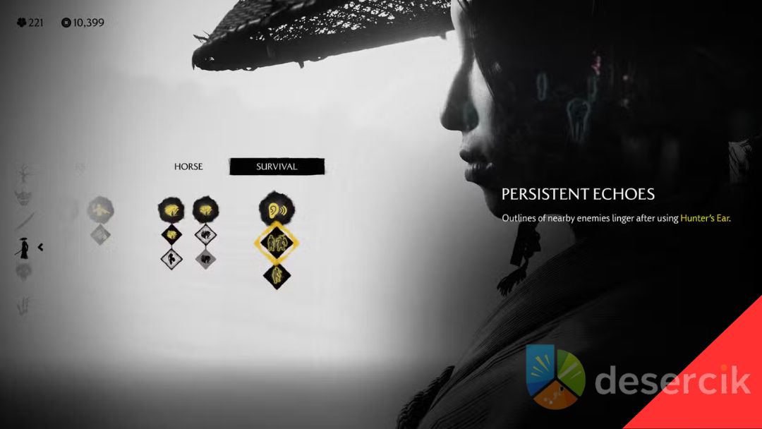 Podczas polowania na Kitsune otrzymasz zdolność nasłuchiwania i wyczuwania otoczenia. To moment, w którym gra naprawdę otwiera przed tobą nowe możliwości. Warto wtedy zainwestować swój punkt techniki w Persistent Echoes.