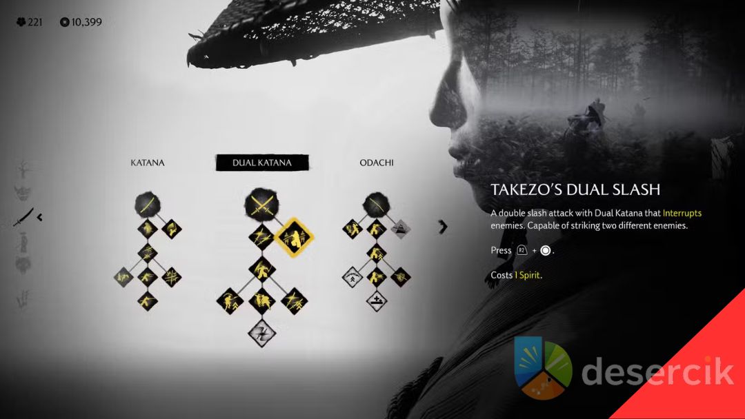 To jedna z najpotężniejszych umiejętności w całej grze. Takezo’s Dual Slash pozwala Atsu przerwać dowolny atak przeciwnika i odpowiedzieć błyskawicznym, niszczycielskim cięciem.