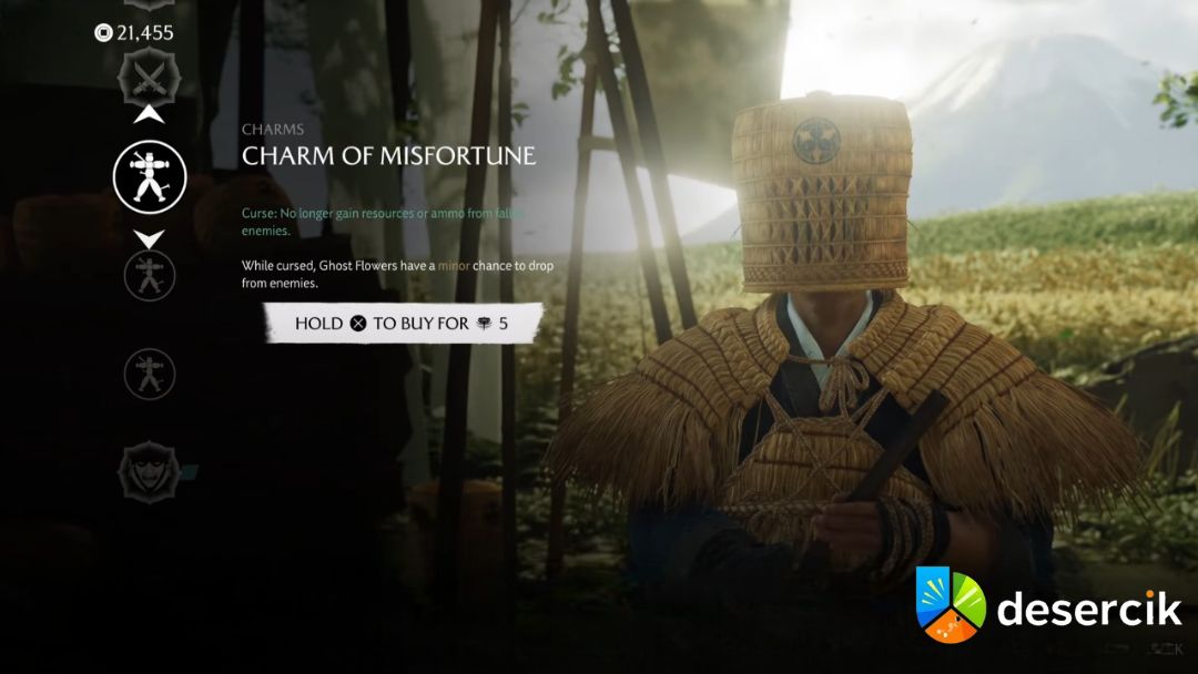 Wśród tych amuletów znajdziesz: Charm of Curse Spirit, Charm of Misfortune i Charm of Frailty. Ich zasada działania jest prosta: osłabiają standardowe dropy, ale dają szansę na dodatkowe Kwiaty Ducha po pokonaniu przeciwnika.
