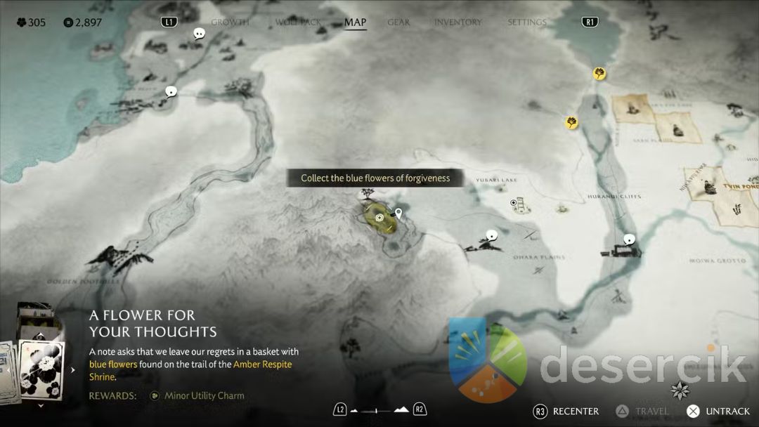 Aby w pełni wykorzystać tę metodę, najpierw warto zdobyć Charm of Bountiful Harvest, czyli amulet, który podwaja lub nawet potraja liczbę kwiatów uzyskiwanych przy każdym zbiorze. Znajdziesz go na pniu drzewa na południowy wschód od Yotei’s Shadow Hot Spring. Ten przedmiot znacząco zwiększy efektywność całego procesu, dlatego dobrze mieć go przy sobie jeszcze zanim wyruszysz na farmę.