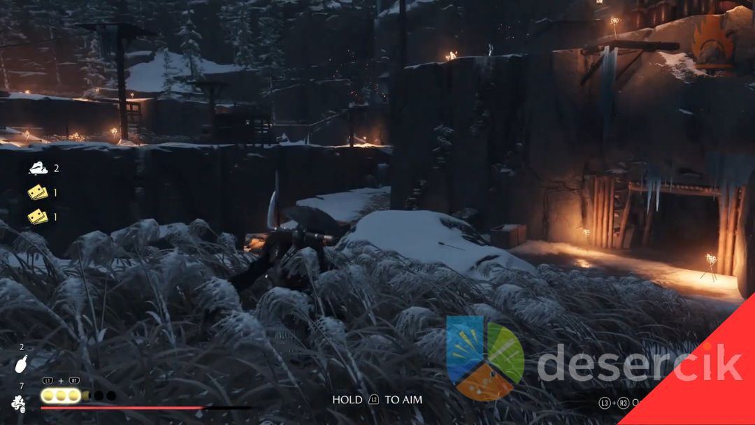 Po rozwiązaniu zagadki podążaj wąską ścieżką do Snow’s Blight Hideout. To rozległy teren, po którym patroluje wielu shinobi z klanu Nine Tails. Musisz pokonać wszystkich strażników, zanim Atsu będzie mogła podejść do głównego fortu na szczycie klifu.