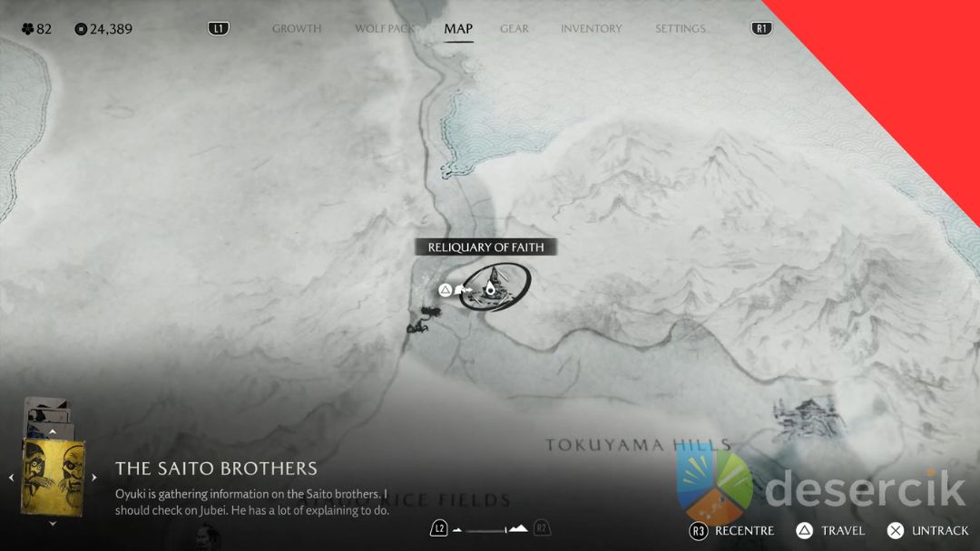 Relikwiarz Wiary leży w regionie Wybrzeża Oshimy. Inne krainy możesz zwiedzać praktycznie od razu po tutorialu, ale Wybrzeża Oshimy wymagają już sporego postępu fabuły. Najpierw skończ wątki Kitsune, Saito i Oni, potem zajmij się Dragonem i Spiderem, a dopiero potem gra zaprowadzi cię do ostatniego regionu w ramach misji głównej.