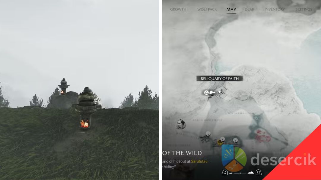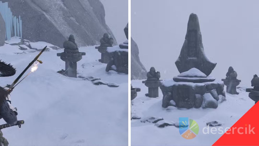 Ten relikwiarz znajduje się na odizolowanym, górskim szlaku, który zaczyna się pod bramą torii, tuż na północ od pijalni sake Nakajima. Aby rozwiązać zagadkę: podpal wszystkie statuetki ognistymi strzałami, a następnie obróć je tak, aby patrzyły prosto na monument. To połączenie zręczności i logicznego myślenia – ogień musi trafić celnie, a ustawienie figurek wymaga precyzji.