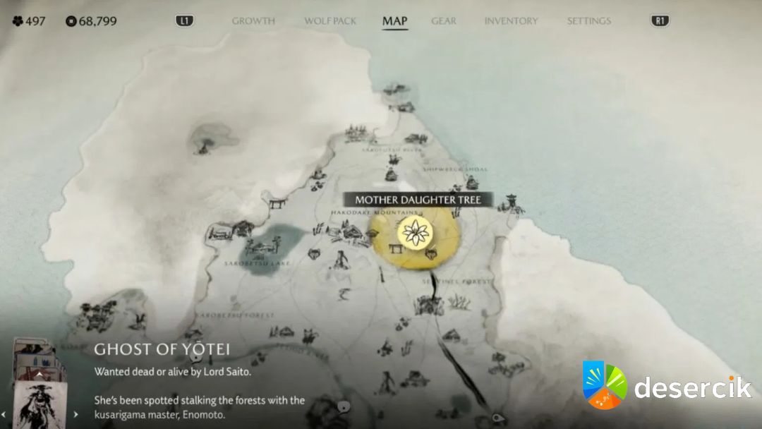 Na Teshio Ridge, tuż na południowy zachód od aktualnej pozycji, znajdziesz kolejne drzewo Matka-Córka z rzeźbą śnieżną pod nim. Po obejrzeniu pomnika pojawią się Yuki Mushi i poprowadzą cię do Starego Domu – miejsca, gdzie mieszkała córka z historii Ugetsu.