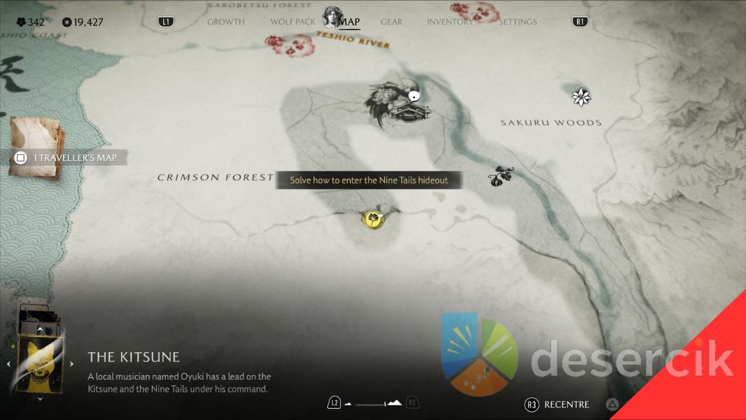 W regionie Góry Teshio główna bohaterka, Atsu, musi zinfiltrować kilka kryjówek należących do tajemniczego klanu Dziewięciu Ogonów. Pierwsza kryjówka, położona w południowej części regionu, jest kluczowa, ponieważ to właśnie tam znajdziesz Szyfr Dziewięciu Ogonów – niezbędny do rozwiązania kolejnych łamigłówek. Podążając za wskazówkami, trafisz w końcu na zamknięte przejście z dwoma posągami lisów i lampionami po bokach. To miejsce jest początkiem pierwszej zagadki.