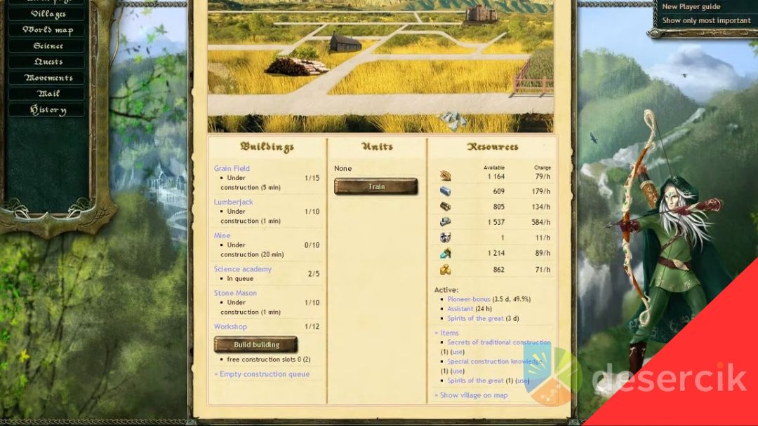 Rozgrywka przypomina nieco Plemiona od InnoGames czy Land of Destiny – czyli klasyczne budowanie od małej wioski aż po potężne średniowieczne królestwo. Na początku masz tylko skromną osadę, kilka budynków i garstkę mieszkańców, ale z czasem – dzięki rozwijaniu technologii, handlowi i sprytnym decyzjom – możesz stworzyć prawdziwe imperium. Gra toczy się nieprzerwanie, nawet gdy jesteś offline, więc po powrocie możesz odkryć, że twój świat żyje własnym życiem: kopalnie działają, wojska się szkolą, a surowce napływają.
