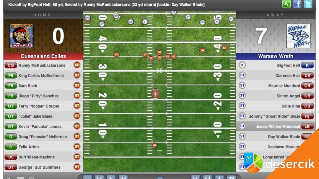 Goal Line Blitz to przeglądarkowy symulator amerykańskiego futbolu, który bardziej skupia się na zarządzaniu i taktyce niż na dynamicznej akcji. To gra, w której nie biegasz po boisku sterując zawodnikami, tylko planujesz każdy krok swojego klubu i rozwijasz własnego gracza, obserwując, jak twoje decyzje przekładają się na wyniki.