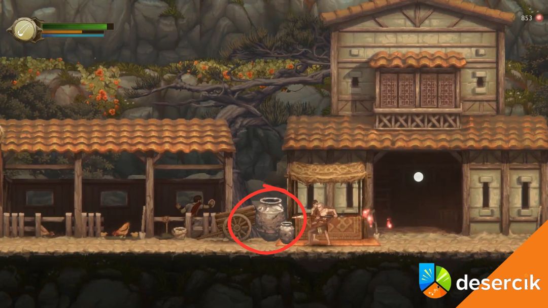 - Rozbijanie kamiennych wazonów – brzmi banalnie, ale to naprawdę szybki sposób na kilka dodatkowych punktów. Wystarczy podejść i uderzyć je włócznią – są wszędzie, więc przy okazji zwiedzania lokacji zawsze warto je niszczyć.