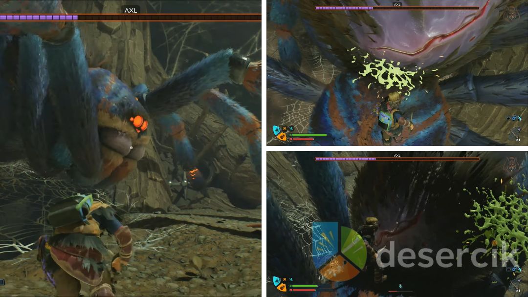 W pewnym momencie AXL wznosi się na tylnych nogach i wydaje głośny krzyk, który ogłusza wszystkich graczy i jednocześnie przywołuje dodatkowe stworzenia. Początkowo są to trzy gąsienice, które z czasem zostają wsparte przez kombinację skorpionów i karaluchów. Boss może próbować pożreć pobliskie stworzenia przy pajęczynowych szczelinach, co przywraca mu zdrowie, dlatego strategiczne pozostawienie niektórych wrogów może odciągnąć jego uwagę i dać Ci więcej czasu na atakowanie słabych punktów.