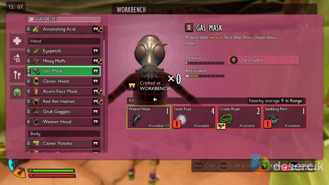 Spotkanie z Pluskwą Smrodliwą bez przygotowania to proszenie się o kłopoty – jej trujący gaz może szybko obniżyć wasze zdrowie, jeśli nie macie Maski Gazowej. Na szczęście, jeśli już zdobędziecie jej części i stworzycie ten sprzęt, walka staje się o wiele łatwiejsza. Na start musicie jednak polegać na sprycie i odpowiednim ekwipunku.