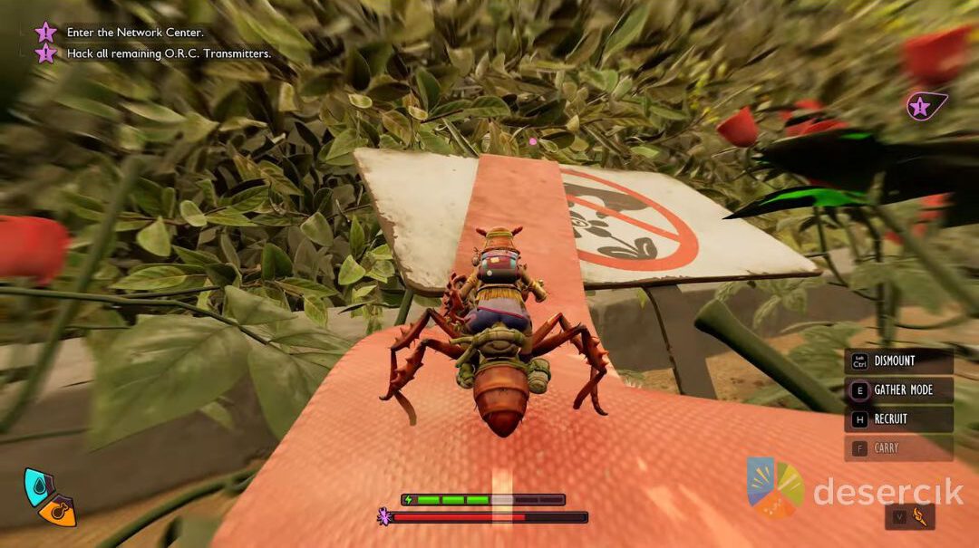 Wyjdźcie z zamkniętego wejścia i zawróćcie. Znajdziecie gałąź biegnącą pod placówką Ominent – jedźcie Buggiem, aż napotkacie O.R.C. Czerwonego Żołnierza Mrówki. Po pokonaniu go przetnijcie korzeń za nim, by wyjść zza żywopłotu. Idźcie dalej, a ścieżka zaprowadzi Was z powrotem do żywopłotu, gdzie w zasadzce czai się O.R.C. Tkacz Kul. Zneutralizujcie go i przebijcie się przez kolejny uschnięty korzeń, który sprowadzi Was na betonową płytę z czerwoną wstążką.