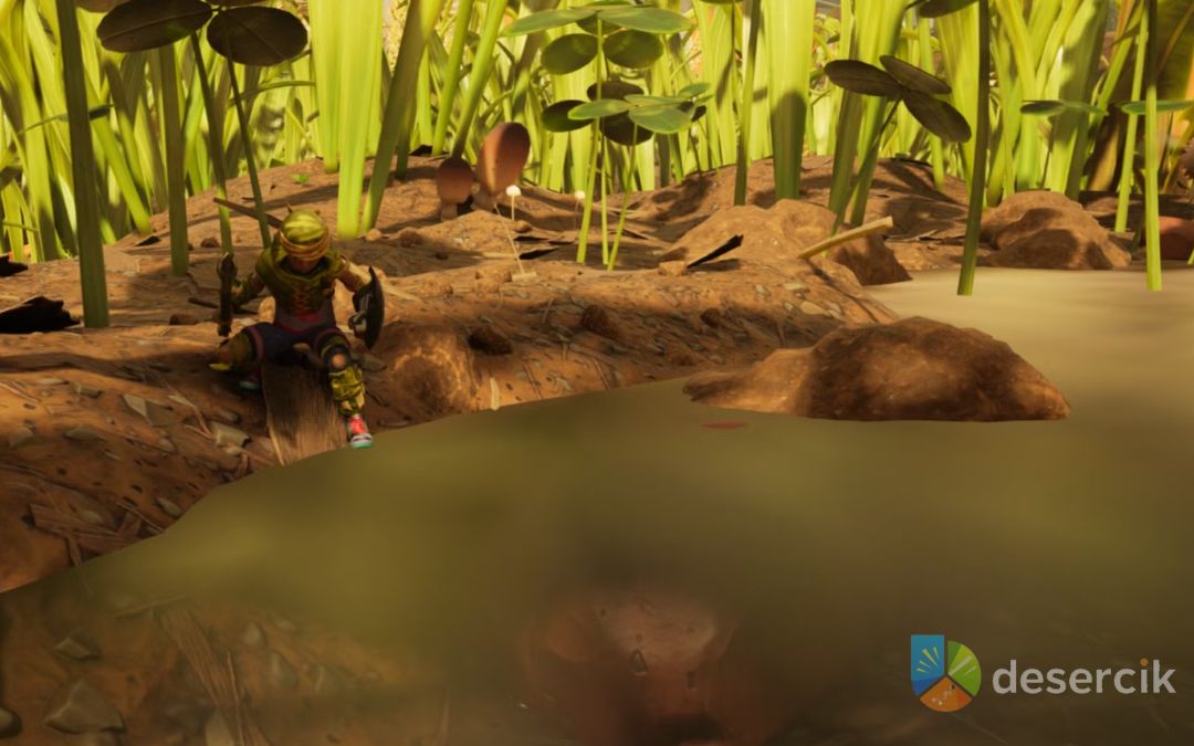 Na początku gry, gdy twój ekwipunek jest jeszcze skromny, możesz zbić krople rosy rzucając w nie oszczepem (Spear) albo kamieniem (Pebble). Każdy trafiony strzał sprawia, że kropla spada na ziemię i można ją wypić od razu – idealne na szybkie ugaszenie pragnienia. Warto wiedzieć, że w początkowej fazie nie da się jeszcze przechowywać rosy w ekwipunku, więc trzeba ją pić od razu.