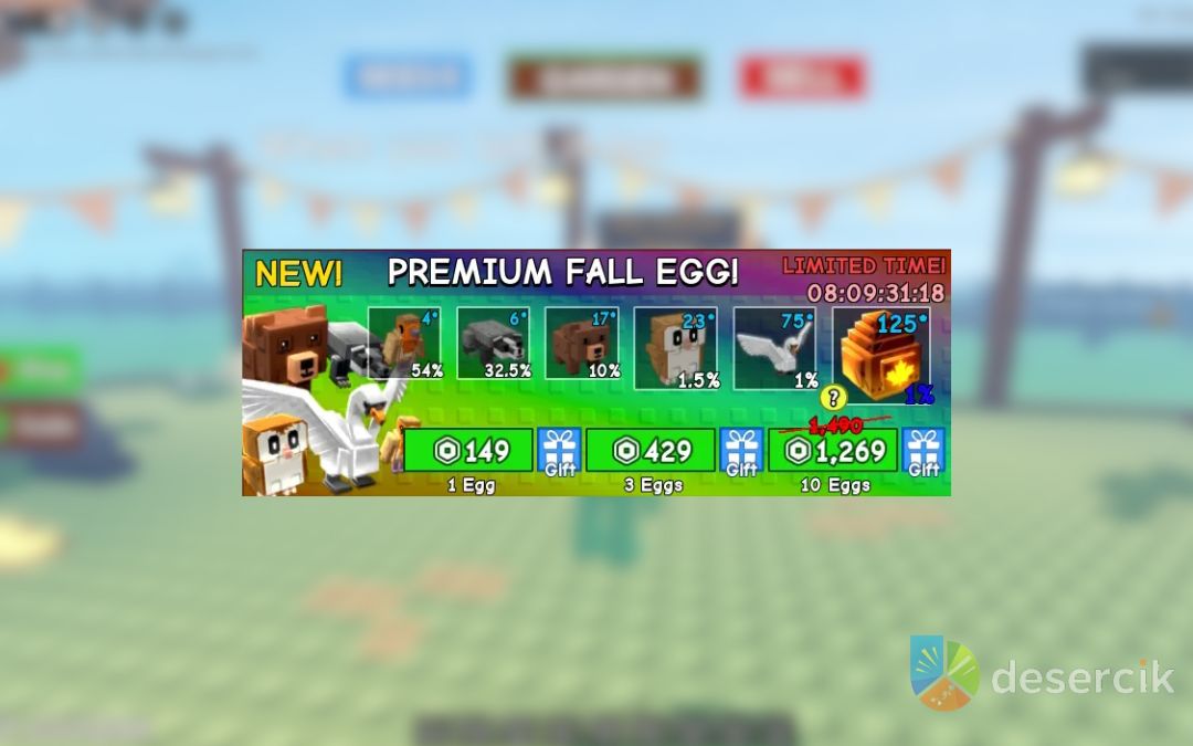 - Sklep premium i Robuxy – Dla tych, którzy wolą szybsze rozwiązania, istnieje możliwość kupna Premium Fall Egg za Robuxy. Do wyboru mamy: