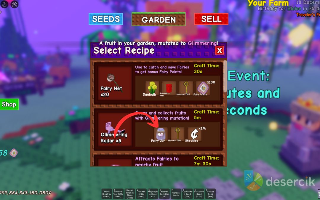 - Glimmering Radar – 1x Fairy Jar, 1x Harvest Tool, 1 000 000 Sheckles
