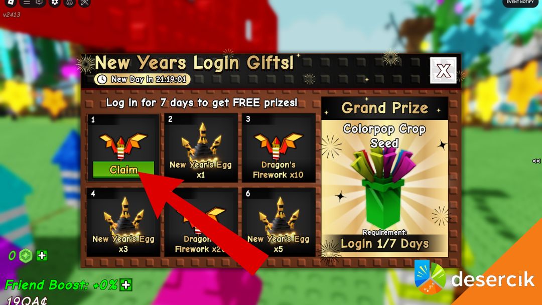 Już po pierwszym dniu logowania możesz zgarnąć pięć Dragon’s Firework, co jest miłym wstępem do reszty nagród. Dwa dni z rzędu dają ci pierwszy New Year’s Egg, a kolejne dni stopniowo zwiększają ilość fajerwerków i jajek. Cała zabawa kulminuje w siódmym dniu, kiedy otrzymujesz Colorpop Crop Seed, czyli nagrodę główną.