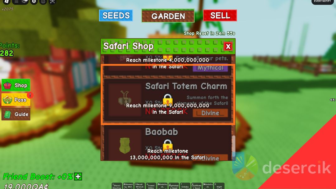 Kiedy milestone zostanie osiągnięty, Safari Totem pojawi się w Safari Shop obok eventowej strefy. Poszukaj NPC Wilderness Will, bo to on sprzedaje charm jako dziewiąty przedmiot w sklepie. Będziesz potrzebować do tego trochę Sheckles.