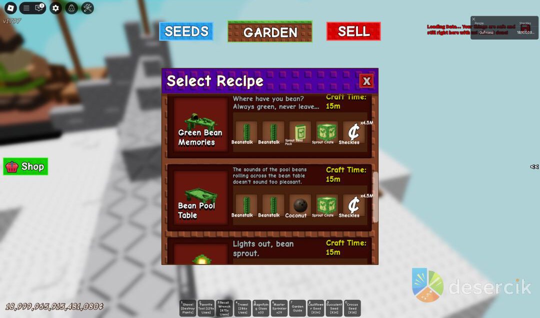 - Sk艂adniki: 2x Beanstalk, 1x Coconut, 1x Sprout Crate, 4.5M Sheckles
