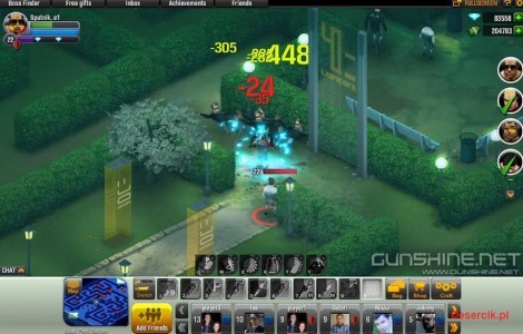 Poruszanie w Gunshine jest intuicyjne i wymaga tylko używania myszki, klikamy tak gdzie chcemy się przemieścić tak samo myszką zaznaczamy cele do ataku itp. Czeka nas tutaj także wiele misji, które otrzymamy od przeróżnych NPC, a pierwszym z zadań będzie po prostu podniesienie broni, czyli sami już się domyślacie, że wykorzystywane będą od początku jako typowy samouczek. Rzeczy takie jak kasa i inne przedmioty zdobędziemy z zabitych wrogów, albo rozwalając przeróżne skrzynki na mapie.