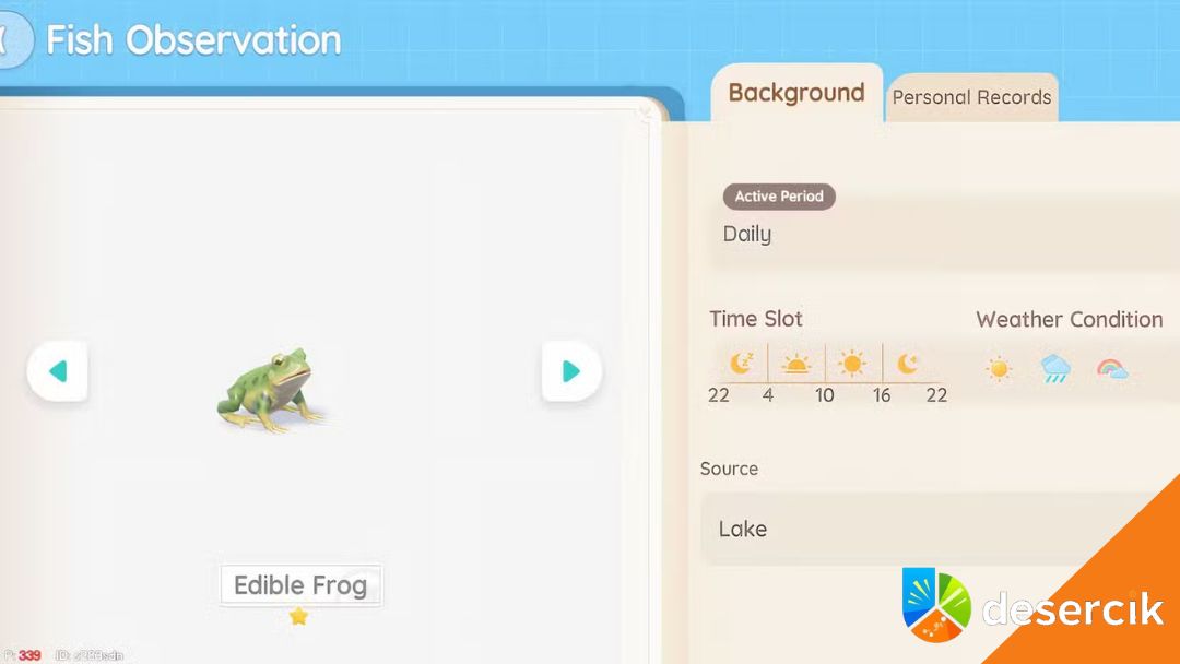 Oficjalnie Żaba wodna staje się dostępna po osiągnięciu Fishing Hobby Level 4, choć czasami można ją złapać wcześniej – tak jak w przypadku innych rzadkich ryb, np. Anglerfish. Może się zdarzyć, że nie pojawia się jeszcze w kolekcji w aplikacji Collections, ale nadal da się ją złowić.