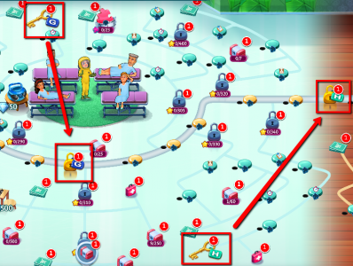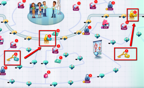 Każdy pokój w grze to oddzielna część szpitala z zestawem poziomów do ukończenia. Początkowo masz dostęp tylko do pierwszego obszaru, ale kolejne są zamknięte na kłódki.