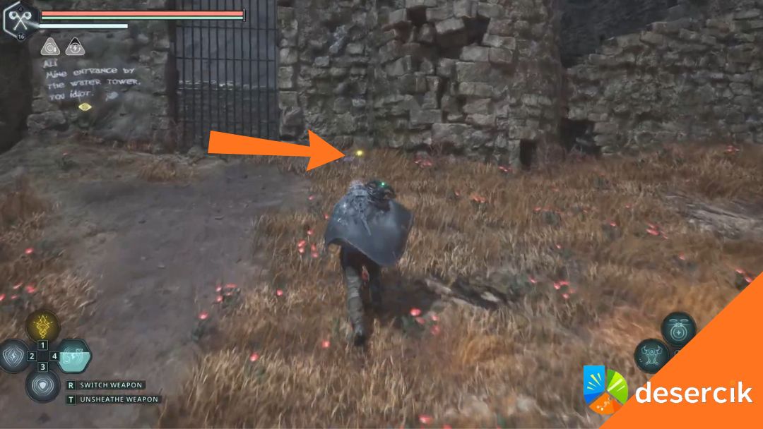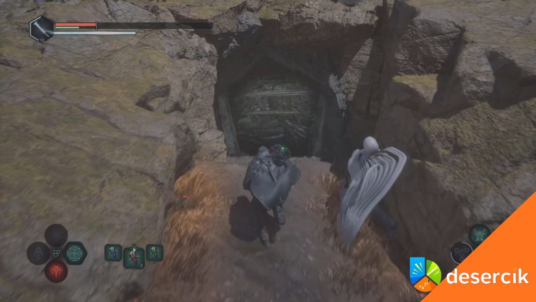 Po lewej stronie, przy kracie, znajdziesz klucz do kopalni, który będzie potrzebny do dalszej eksploracji. Ten fragment gry wymaga od Ciebie dokładności – zwracaj uwagę na otoczenie, bo czasem kolejne przedmioty są ukryte w nietypowych miejscach, np. w skrzyniach lub za niewielkimi przeszkodami terenowymi.
