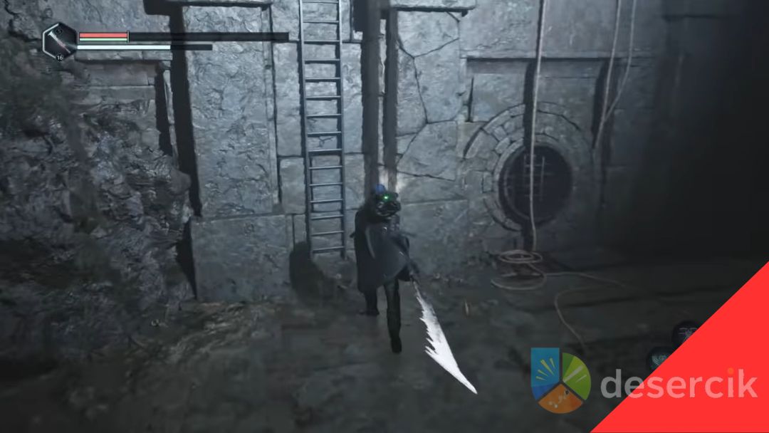 W środku nie licz na spokojną wędrówkę – najpierw trzeba uporać się z wrogami. Korytarz jest ciemny, ale prosty, więc nie ma ryzyka zgubienia się. Po dojściu do oświetlonej sali znajdziesz drabinę. Zsuń ją i idź dalej, skręcając w prawo, gdzie czeka kolejna drabina prowadząca wyżej.