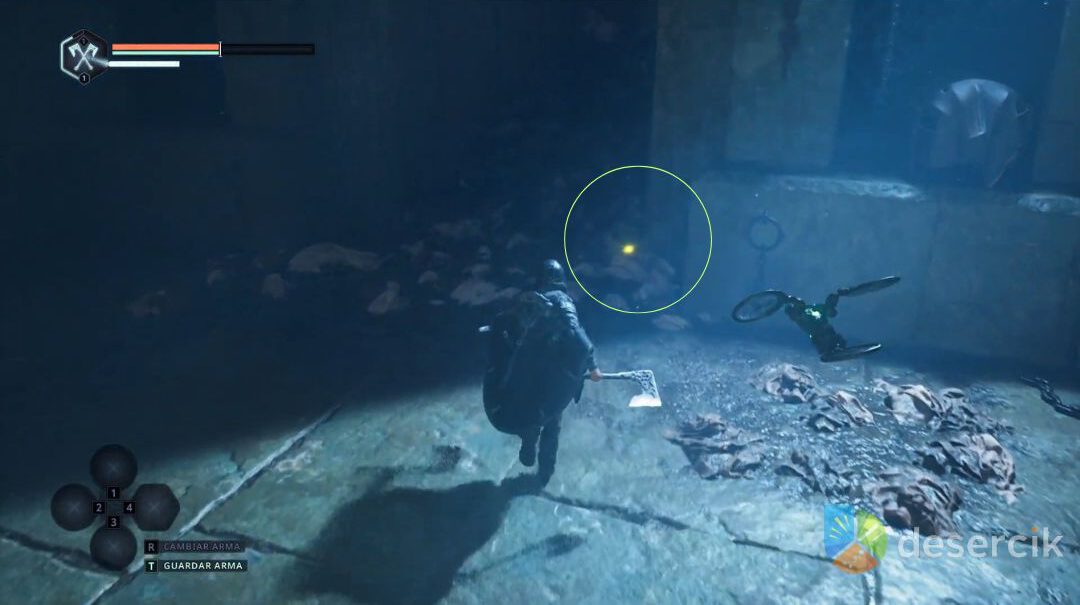 Pierwszy medalion ukryty jest głębiej w ruinach, w jednym z pomieszczeń znajdujących się za początkową strefą walki. Gracz musi przejść przez trzy kolejne pomieszczenia, każde pełne przeciwników i przeszkód, aby dotrzeć do małego ołtarza, przy którym znajduje się medalion.