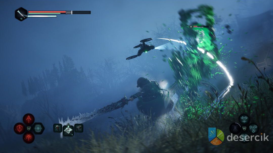 Różnorodność broni też jest ograniczona – miecz, podwójne topory, włócznia i wielki miecz. Broń można dostosować do emocji (ekstaza, żal, strach, wściekłość) i ulepszać modułami, co na początku wydaje się obiecującym systemem personalizacji. Jednak różnica między np. toporem żalu a toporem wściekłości na tym samym poziomie jest minimalna. Te trzy czynniki – powtarzalne walki i brak różnorodności wrogów i broni – sprawiają, że walka szybko staje się monotonna i mało wymagająca.