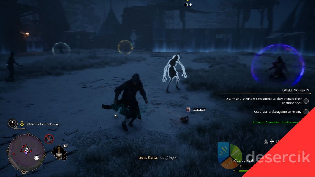 Po przej臋ciu kontroli nad postaci膮 zostaniesz zaatakowany przez du偶膮 grup臋 przeciwnik贸w – goblin贸w i czarodziej贸w Ashwinder贸w, w tym Egzekutora. Pokonaj wszystkich, a nast臋pnie przeszukaj teren – w zamku znajduj膮 si臋 dwie skrzynie kolekcjonerskie: