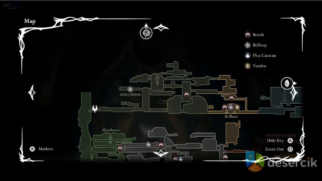 - Ignoruj wrogów i wykonaj dash jump w prawo, przeskakując dzwony i wrogów, aby dotrzeć do małej wnęki po lewej.