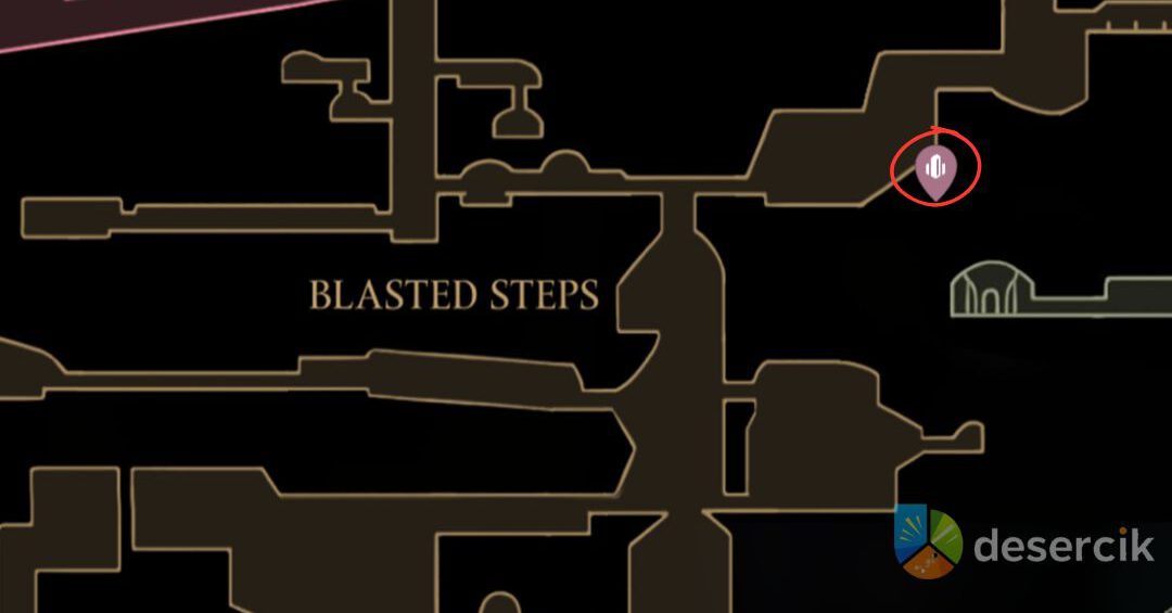 Metal wystaje ze ściany w ukrytej części Blasted Steps. Wąskie przejście prowadzące do tego obszaru znajduje się w prawym górnym rogu lokacji.