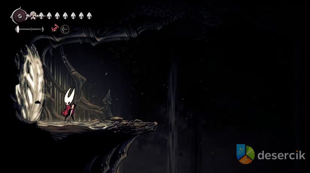 Jednym z bardziej wymagaj膮cych etap贸w jest szeroka piaskowa przepa艣膰 z drzwiami widocznymi po drugiej stronie. W tym miejscu musisz wykona膰 sprintowy skok i w odpowiednim momencie u偶y膰 Clawline, aby zaczepi膰 si臋 o platform臋. Je艣li b臋dziesz mia艂 problem – warto wr贸ci膰 po p艂aszcz Faywing, kt贸ry i tak pr臋dzej czy p贸藕niej b臋dzie Ci potrzebny w dalszej cz臋艣ci gry.