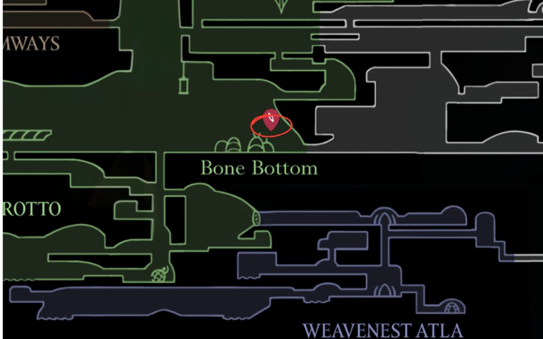 Bone Bottom – pierwszy fragment kupisz u kupca w obozie Bone Bottom, niedługo po opuszczeniu Moss Grotto. Kosztuje 300 Rosary Beads, co na starcie może być sporym wydatkiem.
