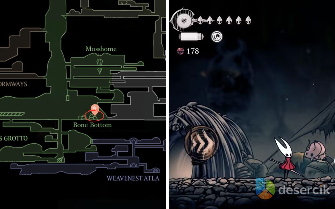Pierwszy klucz znajdziesz w sklepie w Bone Bottom. Kosztuje on aż 500 różańców, co na początku gry jest sumą wręcz astronomiczną. Dlatego większość graczy odpuszcza zakup na starcie i wraca po niego później, gdy sakiewka jest już pełniejsza. To naturalna strategia – na początku każda moneta jest na wagę złota, a klucz choć ważny, nie jest priorytetem na pierwsze godziny zabawy.