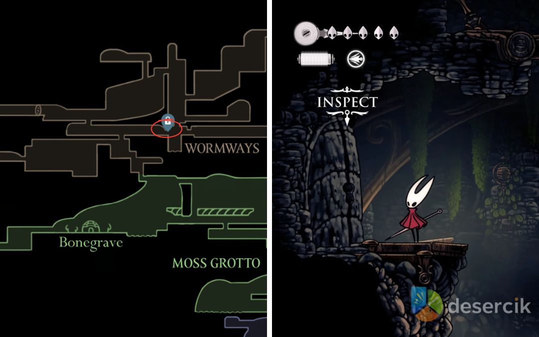 Pierwsze drzwi, które najpewniej napotkasz, znajdują się w pobliżu wejścia do Wormways, tuż nad Bone Bottom. Otwierają one dodatkowy fragment tej lokacji, a nagrody są naprawdę kuszące: narzędzie Sharpdart oraz Plasmium Phials. Warto zajrzeć, bo to znacząco rozszerza wachlarz możliwości w walce.