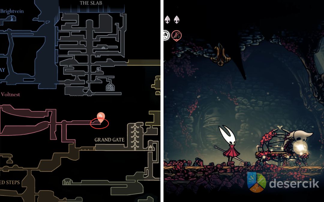 Ostatni z kluczy znajduje się na obszarze zwanym Sands of Karak, dostępnym dopiero po zdobyciu zdolności Clawline w Underworks podczas drugiego aktu. To trudna lokacja, pełna zagadek platformowych i niebezpiecznych przeciwników. By zdobyć klucz, musisz przejść serię łamigłówek z pnączami prowadzących z lewej na prawą stronę mapy. Na końcu, przy ławce po wschodniej stronie, znajdziesz upragniony klucz.