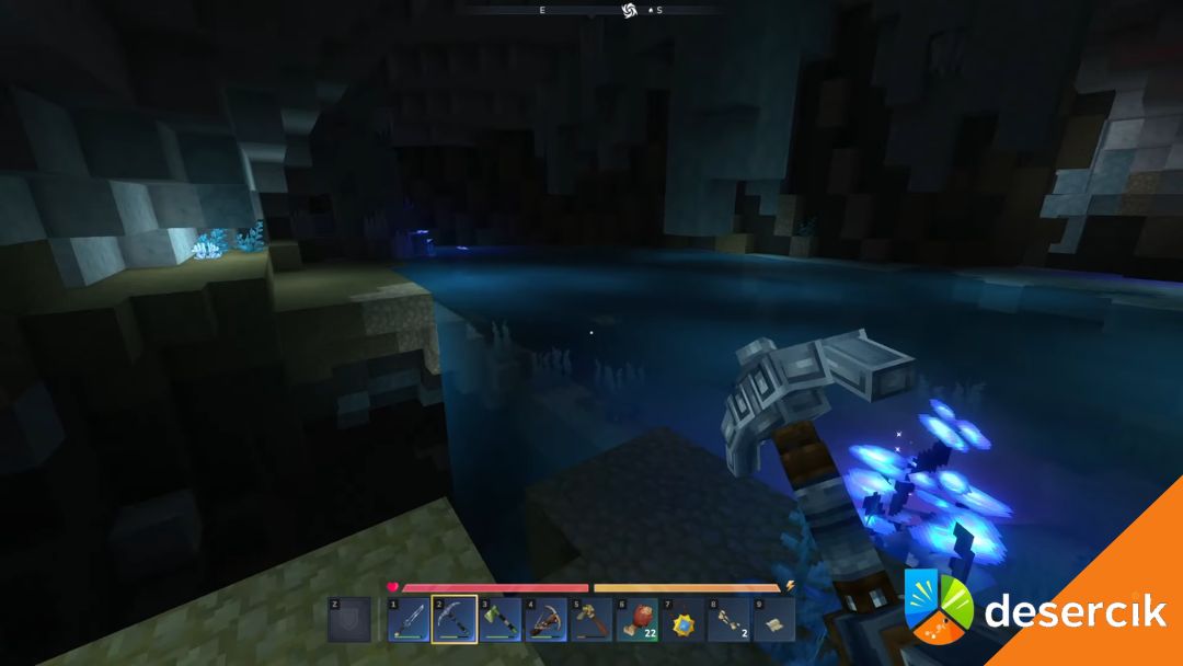 Błękitne wodorosty świecą w ciemności, więc widać je z daleka. Co ciekawe, w Azure Forest w nocy rzadziej pojawiają się przeciwnicy Pustki, więc eksploracja jest odrobinę bezpieczniejsza niż w innych biomach.