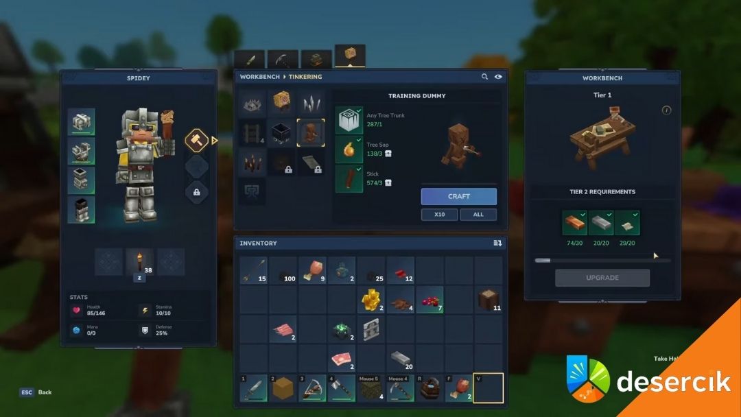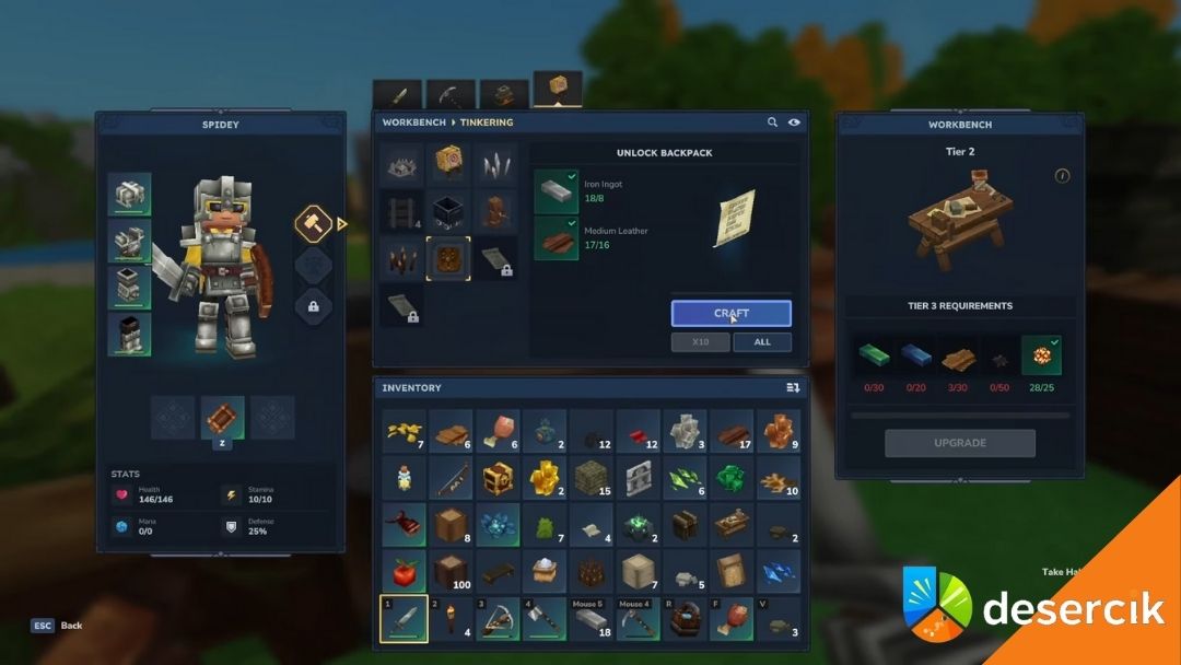 Gdy Twój Workbench osiągnie poziom 2, wejdź z nim w interakcję i przejdź do zakładki Tinkering. Na samym dole listy znajdziesz recepturę Unlock Backpack. Do jej stworzenia potrzebujesz: